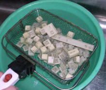 A method for cleaning keyboard's keycaps is similar as with other computer parts, but I just put them to bowl of