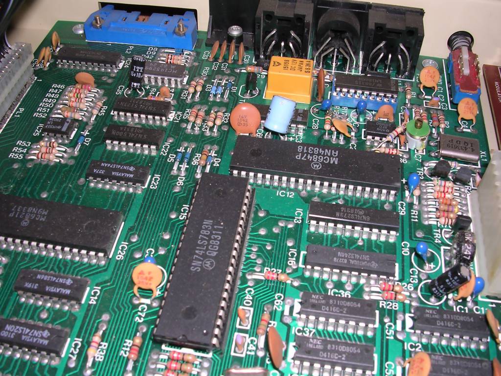 Left: RF out, reset, Joysticks and tape connectors, parallel port