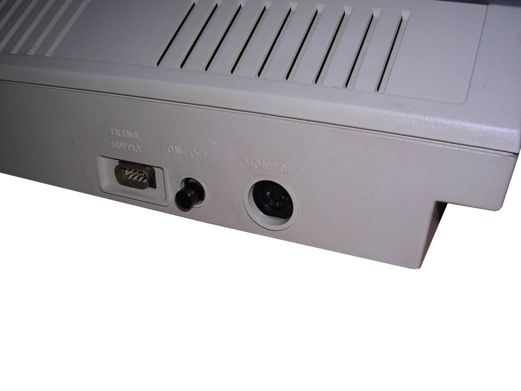 Left: RF out, reset, Joysticks and tape connectors, parallel port